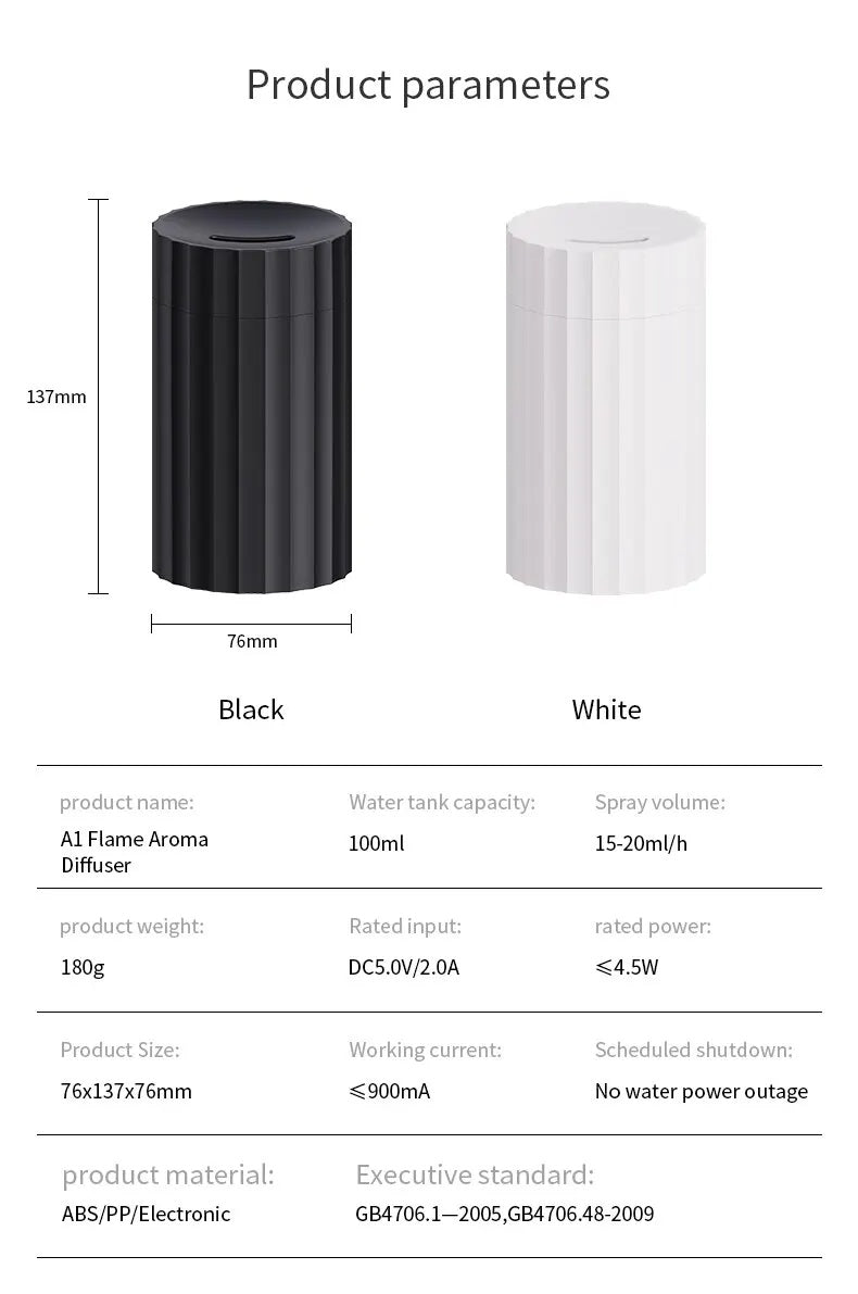 Air Humidifier With Flame Effect Essential Oil Diffuser Quiet Aroma Diffuser Home Fragrances Car Refresh