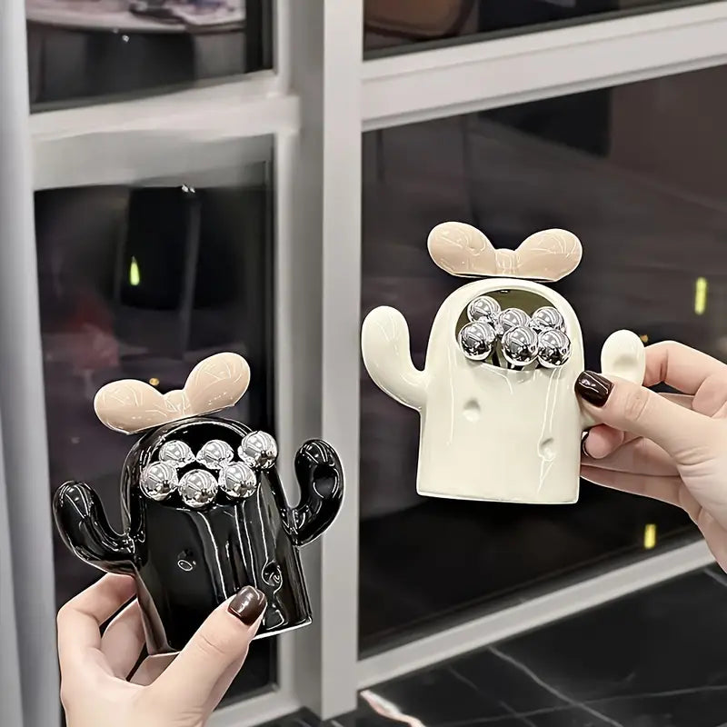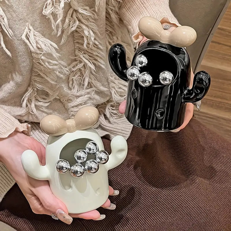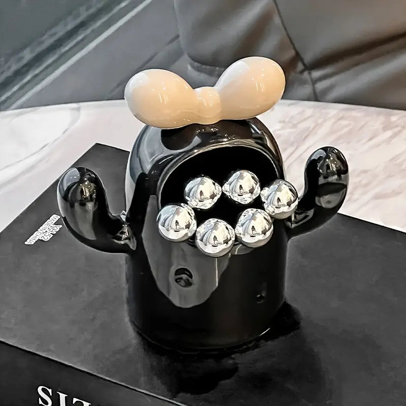 Christmas Ceramic Cactus Jar with Polished Stainless Steel Fruit Forks Set -