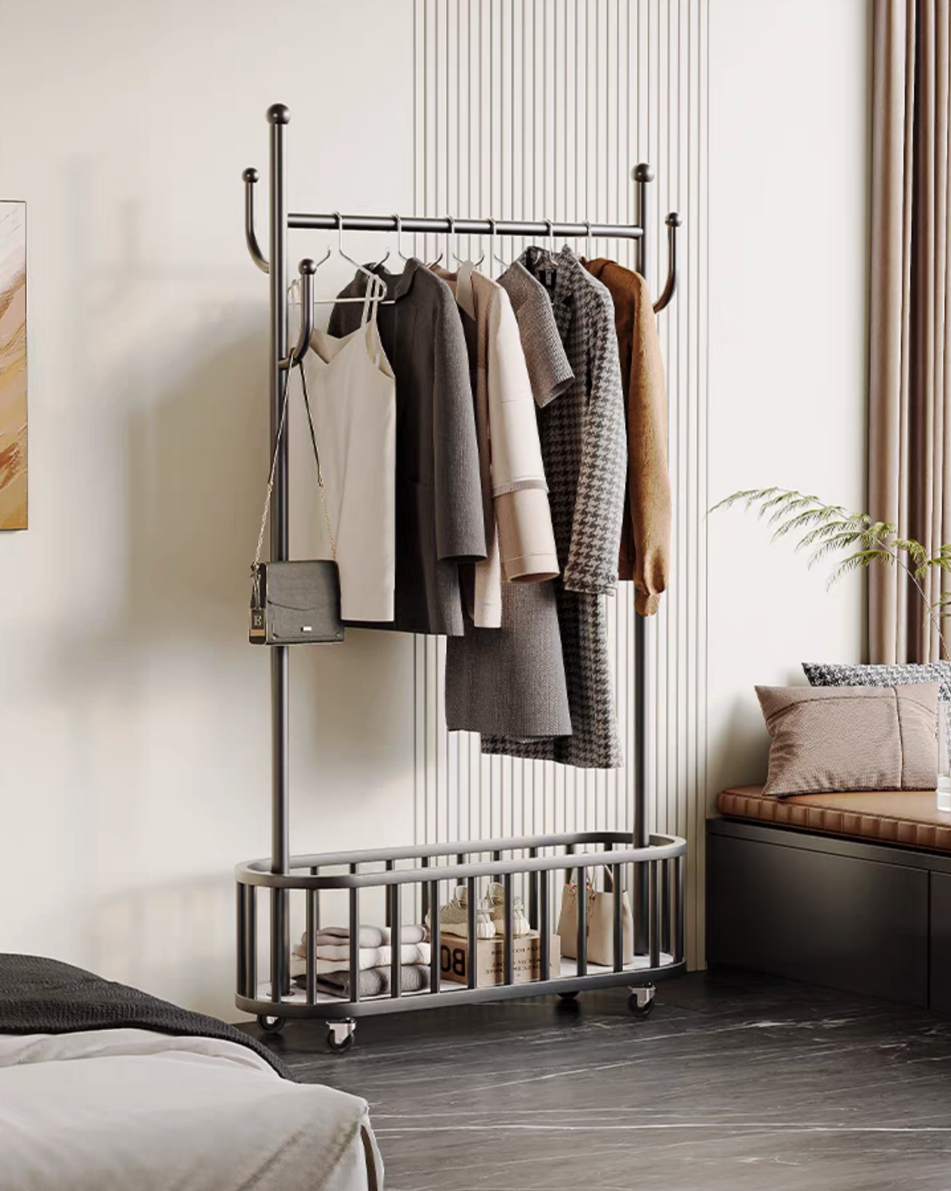 Organize your living room with ease using our Luxury wheeled movable clothes storage rack. With its versatile design and smooth wheels, you can easily move and store your clothes, keeping your space clutter-free. The perfect addition to any stylish and contemporary home.